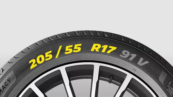 Bandenmaat staat op de zijwand in een code zoals 205/55 R17